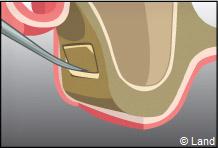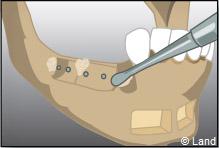 L’intervention est réalisée sous anesthésie locale. Dans cet exemple le forage intéresse la paroi latérale du sinus.
