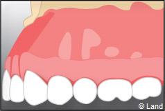 Une anesthésie et une incision semi lunaire sont réalisées et le lambeau de gencive est récliné.